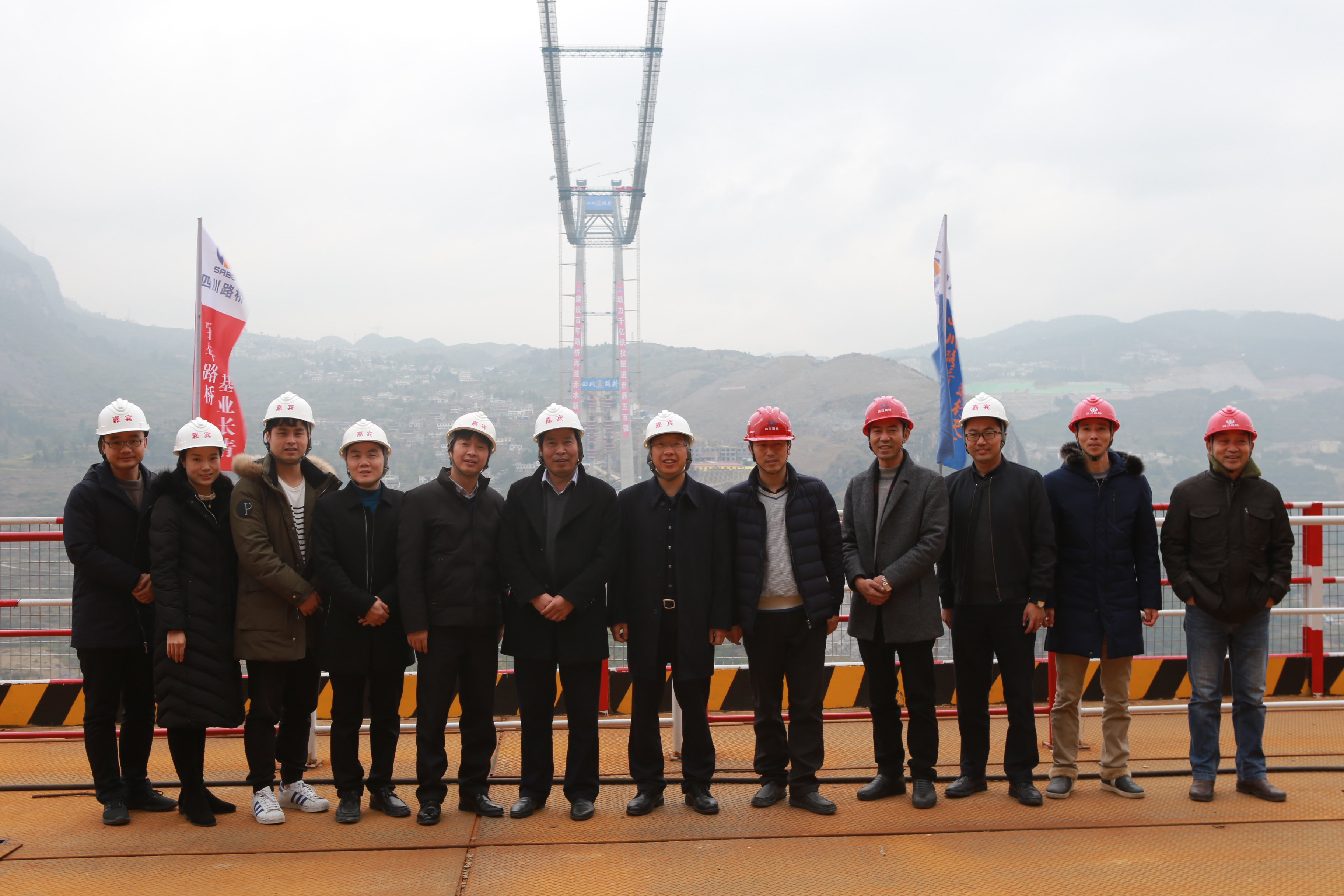 督察組一行在赤水河特大橋建設(shè)現(xiàn)場合影