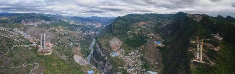 上午10時10分,在赤水河大橋貴州岸243.5米高的主塔塔頂上,無人機牽引著直徑2mm、長2千米的先導索起飛,飛跨1200米的赤水河大峽谷,約3分鐘后到達四川岸228.5米的主塔塔頂,在貴州和四川兩省交界處的赤水河大橋上再次上演了“飛渡赤水”的雄奇畫面,將赤水河大橋兩岸主墩索塔連為一體。